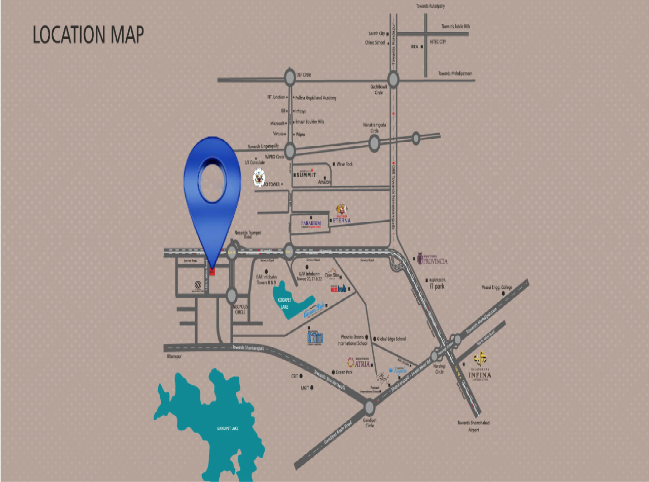 Introducing Rajapushpa Skyra at Neopolis, a prime location off Outer Ring Road. A destination of prime luxury, Neopolis is the abode to luxurious and ultra-luxurious residential developments that will soon redefine the skyline of West Hyderabad.